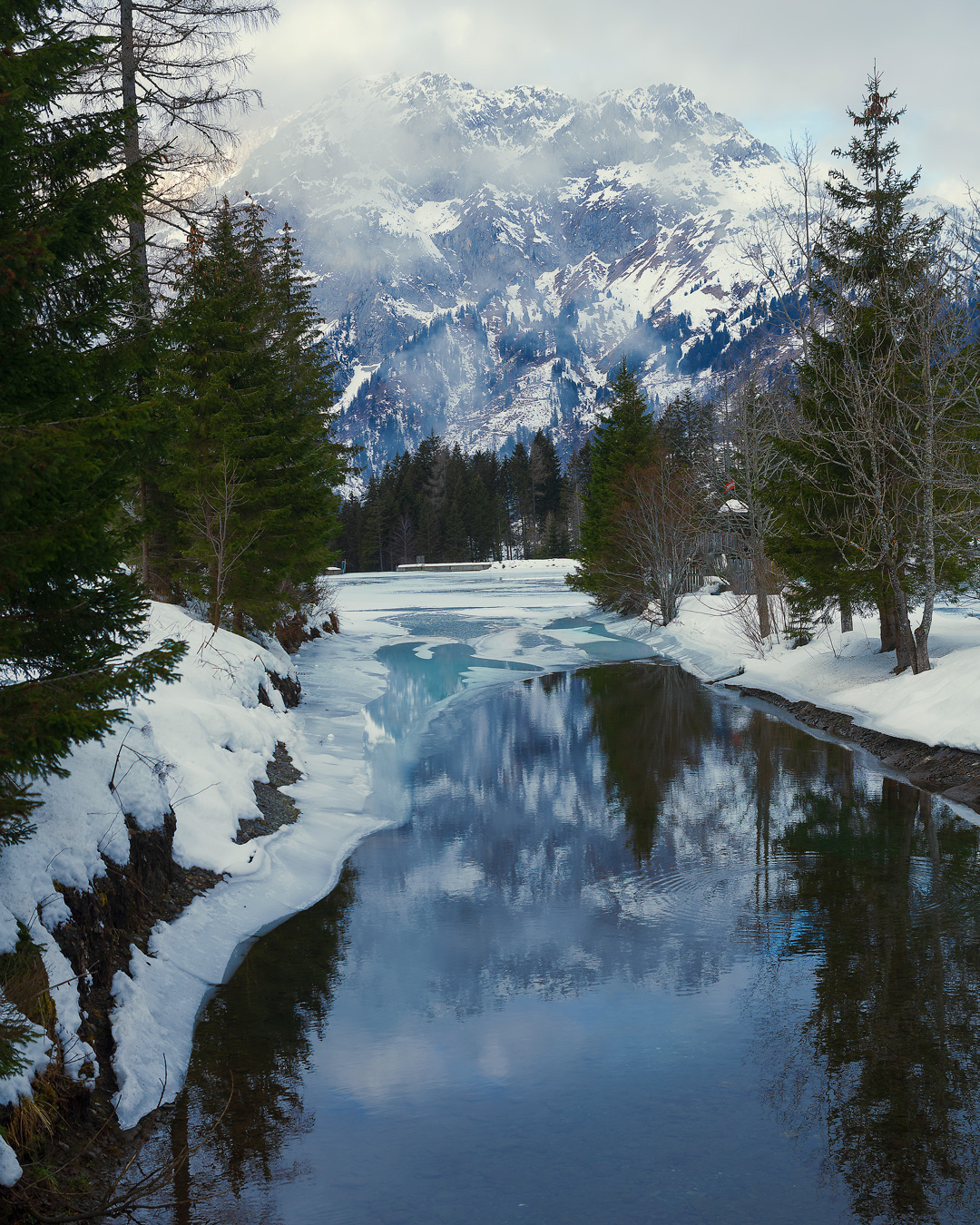 The small Grunsee lake is located just after the Austrian border near Mauthen, here you can breathe a magical winter atmosphere that I portrait in this view on the bridge that passes above the lake. My goal for this image was to achieve an image as sharp as possible, so I put the lowest value ISO on my camera, I focused manually and I obliviously used a tripod for this shot with bracketed shots
